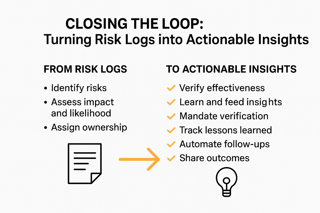Many organizations excel at identifying risks but fail to close them, turning risk management into mere record-keeping. A strong program not only identifies, assesses, and mitigates risks but also verifies effectiveness and feeds lessons learned back into the system. Without this feedback loop, issues recur, audits fail, and teams lose trust. Mandating verification, tracking lessons, automating follow-ups, and sharing outcomes ensures risks are truly managed, not just logged—making your organization smarter, safer, and more accountable.