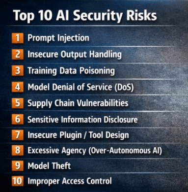 - Risk: Insecure prompt handling can allow misuse, data leaks, or unintended actions.