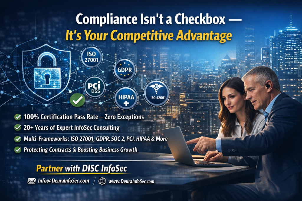 Partner with DISC InfoSec to secure your compliance roadmap and safeguard your business advantage.