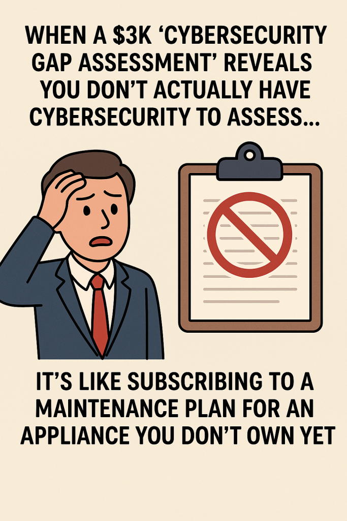 When a $3K “cybersecurity gap assessment” reveals you don’t actually have cybersecurity to assess…